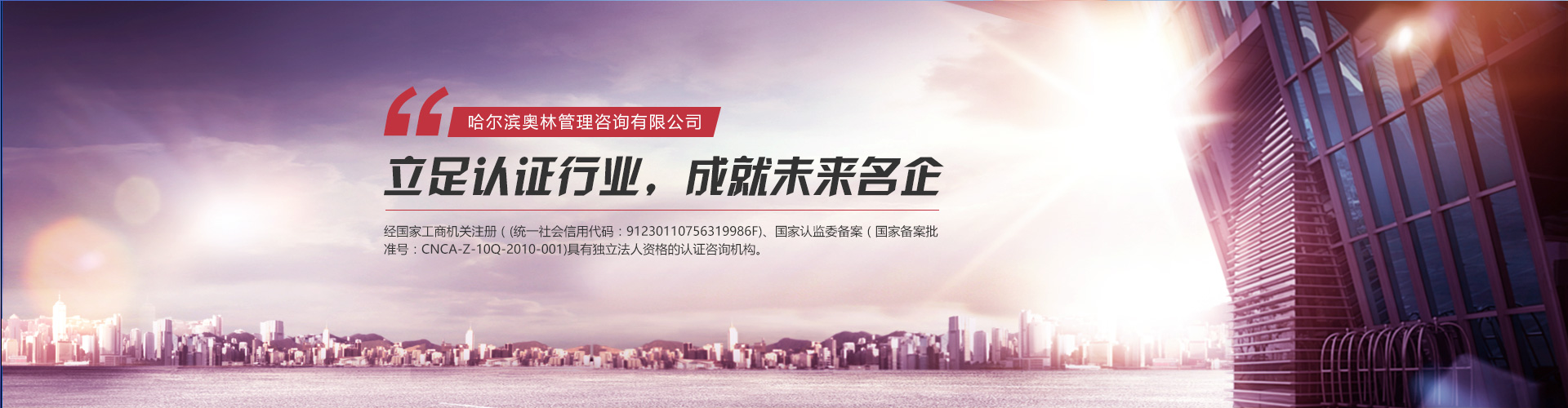 奧林公司是黑龍江省通過國家的再度資格審查,在東三省擁有自己正規(guī)辦公場所并具有國家注冊資質(六標咨詢資質:ISO9001/ISO14001/ISO45001/HACCP/有機認證/TS16949,國家注冊備案時間:2010年1月19日-2014年11月18日)的認證咨詢公司。奧林公司是咨詢業(yè)內專家資質全和專業(yè)范圍完整的國家注冊備案時間長的黑龍江大型咨詢機構。奧林公司的理念是:做企業(yè)與做人一樣,追求真誠,追求永遠。